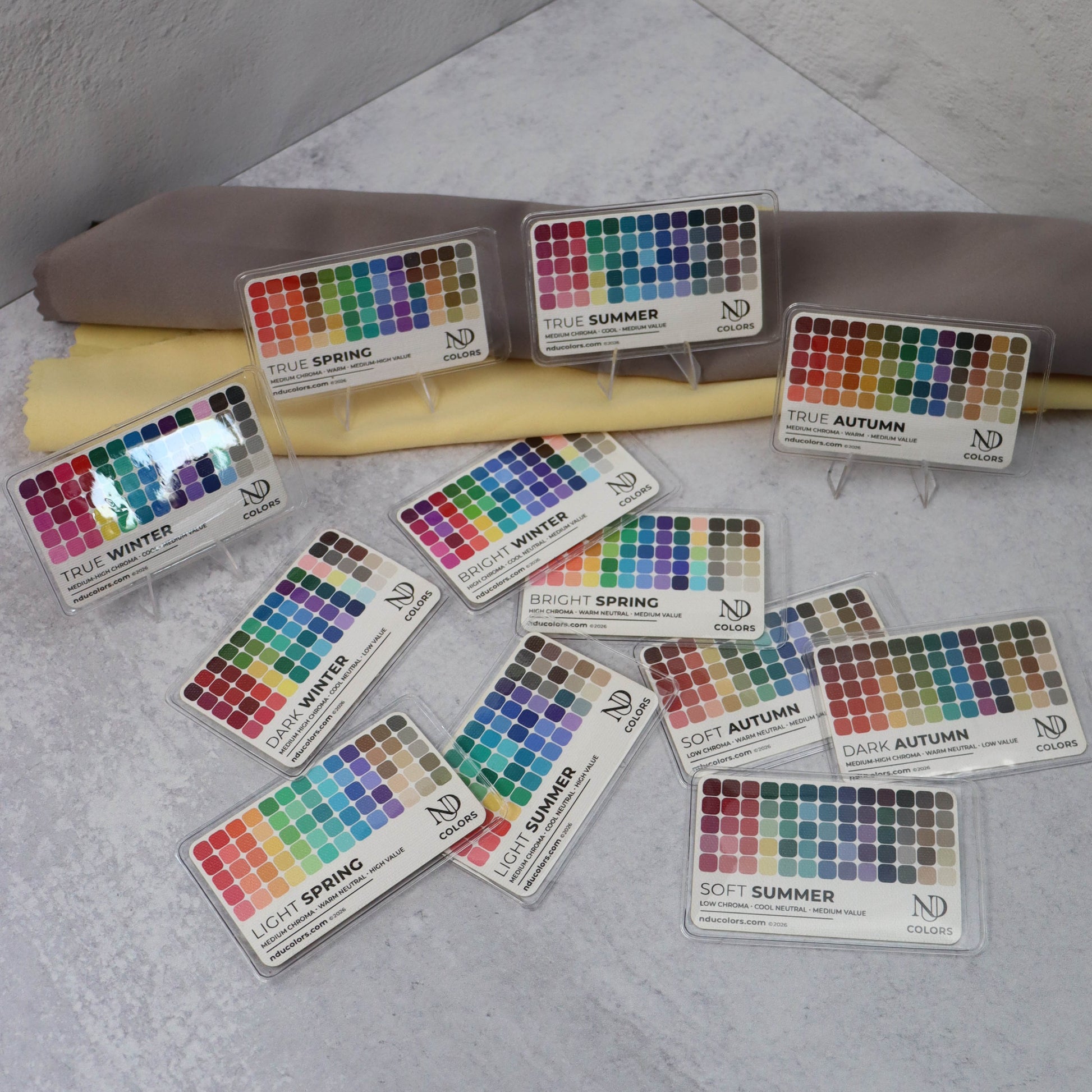 [{"id":469416280284,"handle":"classic-collection","updated_at":"2026-03-19T22:50:52-05:00","published_at":"2026-03-18T22:02:31-05:00","sort_order":"best-selling","template_suffix":"","published_scope":"web","title":"Classic Collection","body_html":"\u003cp\u003eClassic Collection of NDU Colors 12-tone season palette. \u003c\/p\u003e\n\u003cul\u003e\n\u003cli\u003e\u003cspan class=\"a_GcMg font-feature-liga-off font-feature-clig-off font-feature-calt-off text-decoration-none text-strikethrough-none\"\u003eThe 78 colors are in a new layout artistically arranged in the natural color spectrum.\u003c\/span\u003e\u003c\/li\u003e\n\u003cli\u003e\n\u003cspan class=\"a_GcMg font-feature-liga-off font-feature-clig-off font-feature-calt-off text-decoration-none text-strikethrough-none\"\u003ePosters and Color Cards with season characteristics listed in the bottom right corner.\u003c\/span\u003e\u003cspan class=\"a_GcMg font-feature-liga-off font-feature-clig-off font-feature-calt-off text-decoration-none text-strikethrough-none\"\u003e\u003c\/span\u003e\n\u003c\/li\u003e\n\u003cli\u003e\u003cspan class=\"a_GcMg font-feature-liga-off font-feature-clig-off font-feature-calt-off text-decoration-none text-strikethrough-none\"\u003eP\u003cmeta charset=\"utf-8\"\u003eoster sizes include the large letter size of 8.5 x11 inches, the mini 4x6 inches, and the new midi 5x7 inches sizes.\u003c\/span\u003e\u003c\/li\u003e\n\u003cli\u003e\u003cspan class=\"a_GcMg font-feature-liga-off font-feature-clig-off font-feature-calt-off text-decoration-none text-strikethrough-none\"\u003eLarge poster with swatch numbers.\u003c\/span\u003e\u003c\/li\u003e\n\u003cli\u003e\u003cspan class=\"a_GcMg font-feature-liga-off font-feature-clig-off font-feature-calt-off text-decoration-none text-strikethrough-none\"\u003eNew Harmony Strip colors combinations for fans.\u003c\/span\u003e\u003c\/li\u003e\n\u003cli\u003e\u003cspan class=\"a_GcMg font-feature-liga-off font-feature-clig-off font-feature-calt-off text-decoration-none text-strikethrough-none\"\u003eEach fan the season and the two surrounding season's harmony strips to help distinguish between seasons.\u003c\/span\u003e\u003c\/li\u003e\n\u003cli\u003e\u003cspan class=\"a_GcMg font-feature-liga-off font-feature-clig-off font-feature-calt-off text-decoration-none text-strikethrough-none\"\u003eFan numbers have been moved to the right side for a cleaner view of each strip.\u003c\/span\u003e\u003c\/li\u003e\n\u003cli\u003e\u003cspan class=\"a_GcMg font-feature-liga-off font-feature-clig-off font-feature-calt-off text-decoration-none text-strikethrough-none\"\u003eColor numbers are a great tools to communicate about individual colors, for example, is this item a Bright Winter 1.2 red fuchsia. \u003c\/span\u003e\u003c\/li\u003e\n\u003cli\u003e\u003cspan class=\"a_GcMg font-feature-liga-off font-feature-clig-off font-feature-calt-off text-decoration-none text-strikethrough-none\"\u003eThe fans and large poster show a representation block of each seasons metal color.\u003c\/span\u003e\u003c\/li\u003e\n\u003cli\u003e\u003cspan class=\"a_GcMg font-feature-liga-off font-feature-clig-off font-feature-calt-off text-decoration-none text-strikethrough-none\"\u003eA fan strip with the NDU Colors story.\u003c\/span\u003e\u003c\/li\u003e\n\u003c\/ul\u003e","image":{"created_at":"2026-03-18T22:04:53-05:00","alt":null,"width":3859,"height":3859,"src":"\/\/nducolors.com\/cdn\/shop\/collections\/IMG_7586.jpg?v=1773889493"}},{"id":469439512796,"handle":"color-cards","updated_at":"2026-03-20T06:18:00-05:00","published_at":"2026-03-19T15:18:32-05:00","sort_order":"best-selling","template_suffix":"","published_scope":"web","title":"COLOR CARDS","body_html":"\u003cp\u003eThe cute credit card sized palette. Features 65 of the 78 colors of the season with each season characterics. \u003c\/p\u003e"},{"id":416140656860,"handle":"light-summer","title":"Light Summer","updated_at":"2026-03-19T22:27:41-05:00","body_html":"Light Summer Collection","published_at":"2023-03-10T15:37:08-06:00","sort_order":"manual","template_suffix":"","disjunctive":false,"rules":[{"column":"tag","relation":"equals","condition":"Light Summer"}],"published_scope":"web"}]