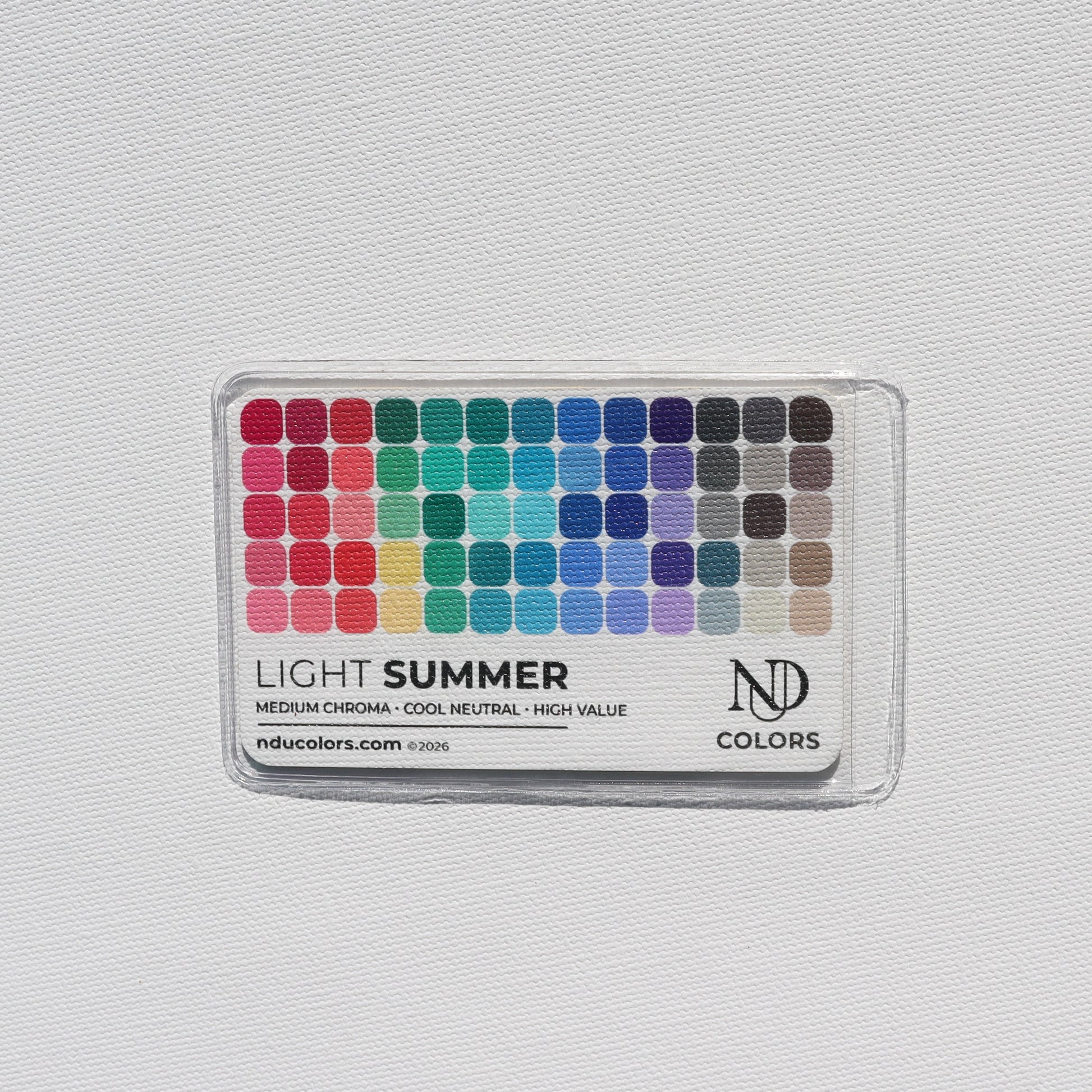 65 Colors of the LIGHT SUMMER palette in a convenient to carry size that fits in your wallet or any card holder.