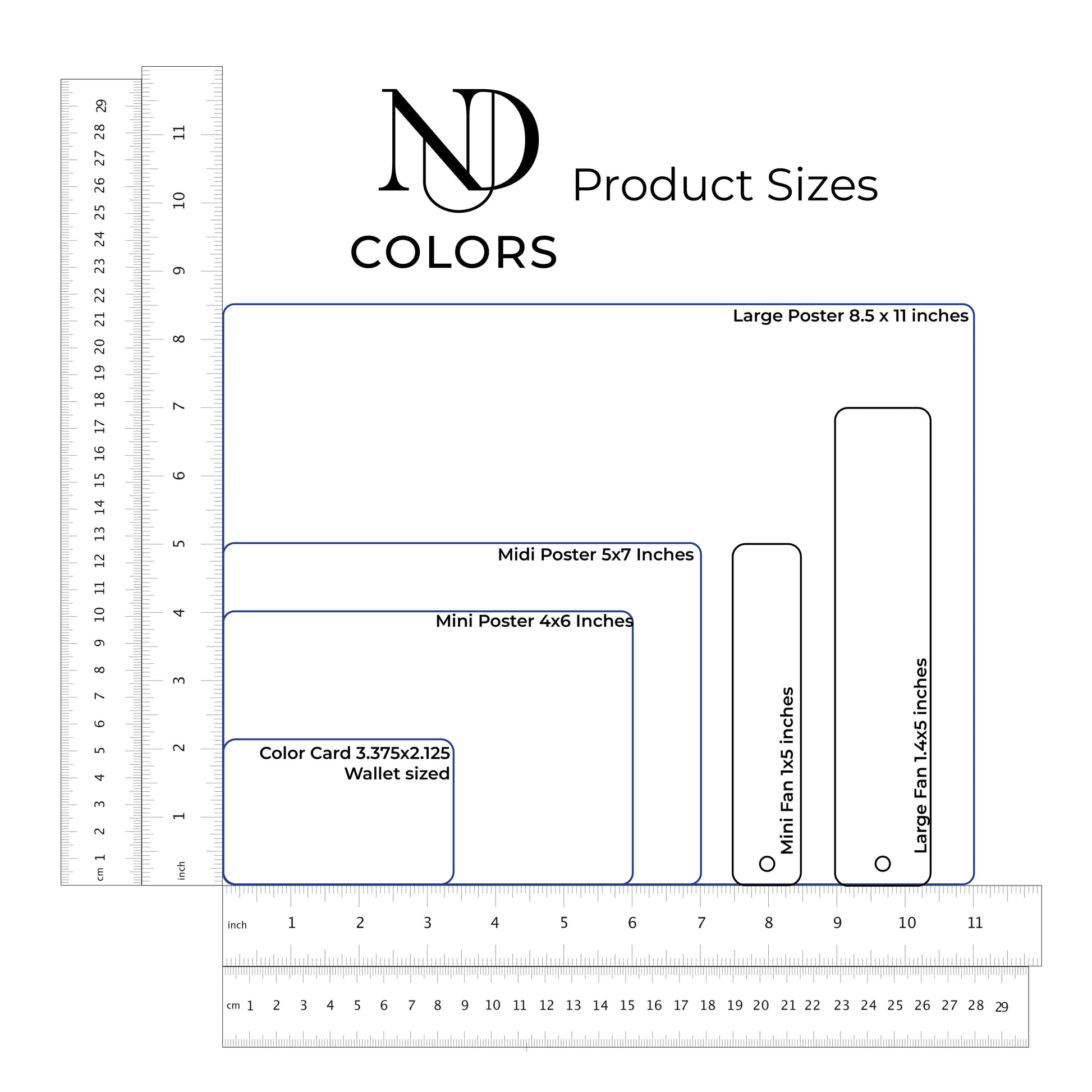 NDU Colors offers various size posters, large 8.5x11 inches, midi 5x7 inches. mini 4x6 inches and the small wallet sized Color Card.